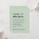 Mínimo convite moderno para recepções de casamento verdes, com "Felizmente Nunca Depois da Festa", numa mistura de uma escrita contemporânea e uma tipografia ousada de tendências. Personalize seu anúncio de casamento e seu convite de recepção e adicione seus nomes em um script semelhante a assinatura. No verso, insira o endereço de URL do seu site de casamento para criar um código de QR para que seus convidados digitalizem para RSVP on-line e obtenham todos os detalhes.
