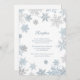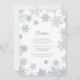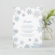 Cartão de recepção de casamento de Natal com flocos de neve azul-prateado. Perfeito para casamentos no inverno elegantes e outros eventos sazonais e feriados.