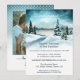 Um recepção de casamento romântica, convite pós-casamento ou depois do casamento com uma pintura em aquarela de uma cena de inverno. O verso mostra sua foto favorita (do casamento) com uma moldura branca azulada com bolinhas.