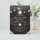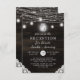 Oak Ridge Rustic Madeira Marrom Escuro, Vidros de Mason Brilhantes e Projeto de Luzes de Corda Iluminadas com fios cintilantes de luzes pendentes e jarros em uma textura de madeira rica e profunda com acentos de Renda Branca. Com Fontes de Tipografia Moderna em Script. Um design de estilo rústico e elegante de casa de fazenda country - Convite de Recepção de Casamento Personalizado!