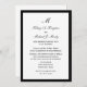 Esses convites de recepção pós-casamento elegantes, mas acessíveis, apresentam um fundo branco para os detalhes do seu casamento que aparecerão em preto. O design é aprimorado por uma pequena borda preta em torno da borda. Este convite de recepção pós-casamento é simples, elegante e barato - que ótima combinação! Copyright bargainsbyhenis