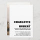Convide amigos e familiares com este convite de recepção de casamento minimalista e elegante, com texto preto em branco, apresentando uma foto dos noivos no verso para compartilhar a alegria do seu casamento recente. Para obter os melhores resultados ao ajustar a imagem escolhida para o verso do convite, corte-a para uma proporção de 5 x 7.