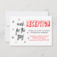 Deixe seus convidados saberem onde será realizado o seu reception com este divertido cartão de casamento com citação motivacional de sonhos desenhada à mão. O cartão apresenta a citação "Alcance as estrelas" impressa em fonte de letra cursiva em negrito com estrelas destacadas contra um fundo branco crocante. Os detalhes do seu casamento são impressos em vermelho negrito e fontes pretas fáceis de ler. O verso do cartão apresenta um fundo preto sólido.