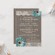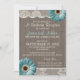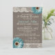 Convite de recepção de casamento rústico churrasco azul turquesa Daisy com madeira de celeiro e renda para um churrasco de 'Eu Aceito' ou recepção casual.