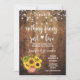 O modelo de recepção de casamento rústico com girassóis lê "nada sofisticado, apenas amor", e apresenta fundo de madeira rústica, uma cesta com girassóis, luzes de corda e fundo correspondente. Para acessar ferramentas avançadas de edição, por favor vá para “Personalizar” e então clique no link "clique para personalizar ainda mais"