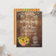 O modelo de recepção de casamento rústico com girassóis lê "nada sofisticado, apenas amor" e apresenta um fundo de madeira rústica, uma cesta com girassóis, luzes de corda e verso correspondente. Para acessar ferramentas avançadas de edição, por favor vá para “Personalizar” e então clique no link "clique para personalizar ainda mais"