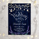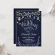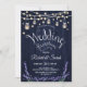 Convite de Recepção de Casamento. Design de estilo rústico com padrão de celeiro de madeira navy, lavanda e luzes de fada com jarros de mason.