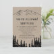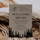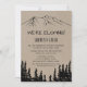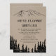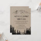 Este convite de recepção de casamento rústico na montanha é perfeito para uma festa pós-casamento na floresta. O design inspirado na natureza apresenta a silhueta de uma floresta de pinheiros e montanhas em papel kraft falso. Cartões de RSVP são vendidos separadamente.