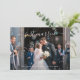 Convite de recepção de casamento / fuga romântica moderno com um design simples com "casados" em um script elegante manuscrito com floreios, juntamente com seus nomes e data de casamento sobre sua foto favorita. O verso tem os detalhes da sua recepção. Este convite de recepção é perfeito para casais que já são casados e desejam celebrar com familiares e amigos após a fuga romântica.