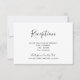 Este cartão de recepção de casamento apresenta um design simples preto e branco acentuado com um texto moderno em estilo manuscrito. O verso é preto com um padrão de faixa branca diagonal.