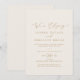 Este convite de recepção de casamento simples em dourado e creme é perfeito para uma festa pós-casamento moderna. O design minimalista romântico apresenta uma tipografia amarela dourada champagne elegante e adorável em um fundo de creme marfim com uma aparência limpa e simples. Os cartões de RSVP são vendidos separadamente, ou você pode adicionar informações de RSVP no verso do cartão.