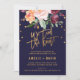 Este cartão de recepção de casamento com floral de outono é perfeito para uma festa pós-casamento clandestino no outono. O design apresenta um buquê deslumbrante de flores em tons de rosa, laranja, pêssego e marsala burgundy com tipografia em folha de ouro falsa e confetes. A parte de trás apresenta um arranjo floral coordenado com tipografia de casamento linda. Cartões de RSVP são vendidos separadamente.