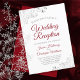 Os convites de casamento são projetados para convidados que são convidados apenas para a recepção, mas não para a cerimônia propriamente dita. Eles apresentam um design simples, mas elegante, com babados de renda prateada em falso foil em um fundo branco. O texto alterna entre cinza e vermelho carmesim com um verso vermelho profundo marmorizado.