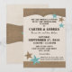 Convite em estilo rústico country para uma recepção de casamento casual em estilo churrasco. Estrelas ocidentais e design inspirado em couro em tons quentes de marrom e azul aqua.