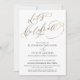 Convite Recepção de Celebração com Caligrafia em Dourado E