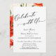 Nesta elegante concepção, utilizei uma fonte caligráfica bonita e ondulada para criar uma sobreposição de tipografia gráfica que diz "Celebre Conosco". Preencha os espaços em branco do modelo com os detalhes do seu evento de celebração para personalizar o design. Todas as camadas foram adicionadas separadamente e deixadas destrancadas para que você possa clicar para personalizar ainda mais e reposicionar o texto ou até mesmo alterar tamanhos ou fontes. A parte de trás do cartão foi coberta com um design ousado que apresenta papoulas em aquarela vermelha. Por trás disso, há uma imagem que retrata confetes dourados. Muito festivo! Estas imagens podem ser substituídas por uma imagem diferente ou imagens se você preferir algo diferente para acompanhar a frente elegante e simples deste cartão.