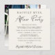 Anúncio de casamento ou noivado simples e elegante em creme e convite quadrado para recepção de casamento. A frente apresenta "Festa Feliz para Sempre" em uma mistura de tipografia simples e uma caligrafia moderna. Personalize seu anúncio e convite e adicione seus nomes em uma caligrafia semelhante a uma assinatura. O lado reverso apresenta sua foto de casamento favorita, seus primeiros nomes e data.