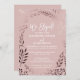 Este convite de recepção de elopamento rosa e dourado é perfeito para uma festa de elopamento sofisticada. O design apresenta uma moldura folhosa em folha de ouro rosa falsa deslumbrante em um fundo rosa suave e é combinado com uma fonte cursiva brilhante. Os cartões de RSVP são vendidos separadamente.