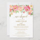 Este cartão de convite para recepção de elopementos de flores cor-de-pêssego e rosa é perfeito para um elopemento elegante. O design floral apresenta um belo arranjo de peônias de aquarela em tons de blush e coral, combinado com uma caligrafia de folha de ouro afiada. As placas RSVP são vendidas separadamente. Nota: Este design não apresenta folha de ouro real. É um gráfico de alta qualidade feito para se parecer com folhas de ouro.