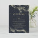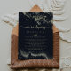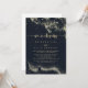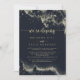 Este cartão de recepção de elopemento de cor d'água salgada é perfeito para uma festa de elopemento poste rústica. O design apresenta uma abertura dourada pintada manualmente em um fundo azul escuro.