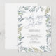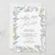 Este convite de festa de fuga "nada chique só amor" com folhagens é perfeito para um evento rústico. O design apresenta uma moldura boho de folhas verdes e botânicos folhosos com as palavras "nada chique só amor" em uma fonte de letra moderna e linda. Este convite é perfeito para uma recepção de fuga, festa de noivado, anúncio de casamento ou jantar de ensaio.