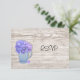 Este cartão de confirmação de presença para recepção de casamento Country Hydrangea apresenta uma flor de hortênsia em um jarro de vidro depression. Procure por convites de casamento e anúncios de Save The Date combinando.