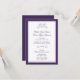 Simplicidade e elegância: uma borda dupla roxa em um fundo branco, fontes lindas e cores correspondentes. Use a ferramenta Personalizar para adicionar suas informações. Para itens correspondentes, visite minha Coleção de Casamento com Bordas Roxas e Brancas Elegantes.
