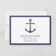 Adicione um toque pessoal ao seu casamento com o moderno conjunto de convites de noivado com âncora azul marinho: cartão de recepção.