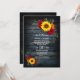 Convide amigos e familiares com este convite de recepção de noivado em madeira de celeiro azul com girassol e rosa vermelha, concebido para casais que decidem celebrar o seu casamento num ambiente íntimo e, posteriormente, numa recepção com amigos e familiares.
