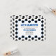 Cartão de inserção para festa de recepção de Bar Mitzvah com tema de futebol com fundo de bola de futebol e sotaques azuis. Este cartão de inclusão de recepção de Bar Mitzvah com tema de futebol é elegante e moderno. Este cartão de recepção de Bar Mitzvah com tema de futebol apresenta um fundo com padrão de bola de futebol preto e branco. As cores deste design único de Bar Mitzvah com tema de futebol são azul, preto e branco.