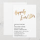 Convide seus convidados para a celebração do seu casamento com a ajuda desses simples cartões de convite. Para o cabeçalho, usei uma fonte manuscrita casual e moderna para criar uma sobreposição de tipografia gráfica que diz "Felizes para Sempre". Esta imagem foi decorada com um efeito de folha de ouro falso liso para um resultado festivo. Preencha os espaços em branco do modelo com seus detalhes para personalizar o design. Todas as camadas permaneceram desbloqueadas para que você também possa clicar para personalizar ainda mais e reposicionar o texto ou até mesmo alterar tamanhos ou fontes. A cor do fundo foi deixada branca, mas isso também é editável; mude para uma das cores do seu casamento, se preferir. Alternativamente, você pode optar por adicionar uma imagem ao verso. Por favor, não hesite em entrar em contato para obter ajuda com a personalização.