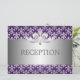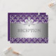 Desenho de "recepção" de casamento elegante com um romântico motivo Fleur De Lis Roxo, nomes personalizados e texto de data. Impressione sua família e amigos com este design moderno e sofisticado. Totalmente personalizável! Fácil de usar e personalizar.