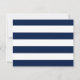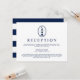 Convites de recepção exclusivos com tema náutico, apresentando um farol em estilo vintage e um fundo listrado de azul marinho e branco no verso.