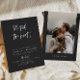 Este convite para recepção de elopementos apresenta uma fonte moderna de pincel e um design contemporâneo com uma combinação de cores preto e branco sujo. É perfeito para qualquer casal contemporâneo, moderno ou boho. Edite o texto *maioria* e todas as cores para atender às suas necessidades e adicione uma foto no verso para um toque pessoal.
