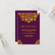 Cartão de recepção elegante com uma elegante arte mandala geométrica contra fundo de ameixa.