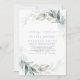 Convites de casamento com caligrafia romântica e verde-azulado poeirento para recepção noturna sonhadora