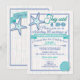 Você se casou em um destino tropical e agora quer compartilhar seu amor com familiares e amigos? Então este convite de praia com conchas é para você! Bonito e moderno com tipografia divertida. Apresenta coral, tons suaves de verde e azul, estrelas-do-mar e conchas contra um fundo estriado de cor arenosa. Ótimo para uma recepção de casamento com tema praiano. Ilustração desenhada à mão por McBooboo.