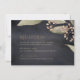 Folhas de verde botânico de cor d'água russa sobre o fundo de cinzas de índigo escura, cartões de recepção elegantes e românticos para casamento rústico vintage, casamento country e casamento de jardim à noite no outono e no inverno. Veja todas as peças correspondentes na coleção abaixo.