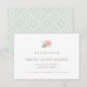 Projetado para combinar com nossa coleção de convites Island Hibiscus, este cartão de recinto de recepção de casamento com estilo de ilha chic tem um clima tropical vintage, com uma pequena ilustração de flor de hibisco cor-de-coral e verde e os detalhes da recepção de casamento em taupe suave. Os cartões têm no verso um padrão de treliça de bambu branco sobre verde pastel.
