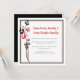 This reception-only wedding invitation features a modern, minimalist design with soft romantic accents. A clean white background is framed by a subtle double border in red and black, while a graceful botanical illustration rises along one side with slender black stems and delicate red leaves. Elegant script typography is paired with classic serif text, creating a refined and easy-to-read layout. The overall palette of red, black, and white feels polished and contemporary, making this invitation ideal for a stylish, reception-focused celebration. Personalize with your own information.