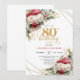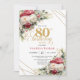 Convite Red blush roses 80th birthday invitation with gold
