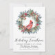 Imprima seus convidados com este convite de feriado elegante. Um cardeal vermelho fica no centro de uma coroa de pinheiros tradicional decorada com pinecones, bagas e flores. Você terá um convite profissional facilmente concluído em minutos. Este item faz parte da coleção Elegante do Cardeal Férrea de Natal. Ele contém os modelos que você pode usar para criar um conjunto de convites exclusivo e coordenar suprimentos da parte.
