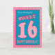 Um doce 16º Aniversário para uma Filha de Deus, com uma sensação bonito e retrógrada. As letras, números e bordas estão em vermelho e branco, cheque gingham e bolinhas em um fundo azul denim. Você pode mudar a mensagem de dentro, se quiser.
