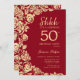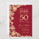 Surpresa floral de ouro vermelho 50º convite de aniversário. Design elegante com rosas, folha de ouro falsa e letra de script de tipografia. A Trendy convida o cartão perfeito para uma festa de na moda. Pode ser personalizado para qualquer idade. Impressos convites Zazzle ou modelo de impressão digital instantânea para download.
