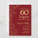 Red Dourado Surpresa Floral 60º Convite de aniversário. Design minimalista moderno com sotaques botânicos e letra de escrita tipográfica. Simples cartão de convite floral perfeito para uma festa surpresa na moda. Pode ser personalizado para qualquer idade.