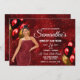 Convite Red & Dourado Sweet 16 Girl Birthday