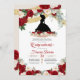 Convite Red Floral Dourado Elegante Charro Quince Birthday