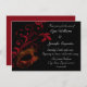 Simples, mas elegante, vermelho e ouro floral embelezado, convite de casamento com mascarada, com uma máscara veneziana vermelha e ouro e flores. Personalize com os detalhes do seu próprio dia especial.