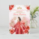 Convite Red Floral Princesa Vestida Dourada Quinceañera