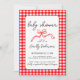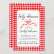 Convite Red Gingham Cute Bow Handwriting Baby Shower